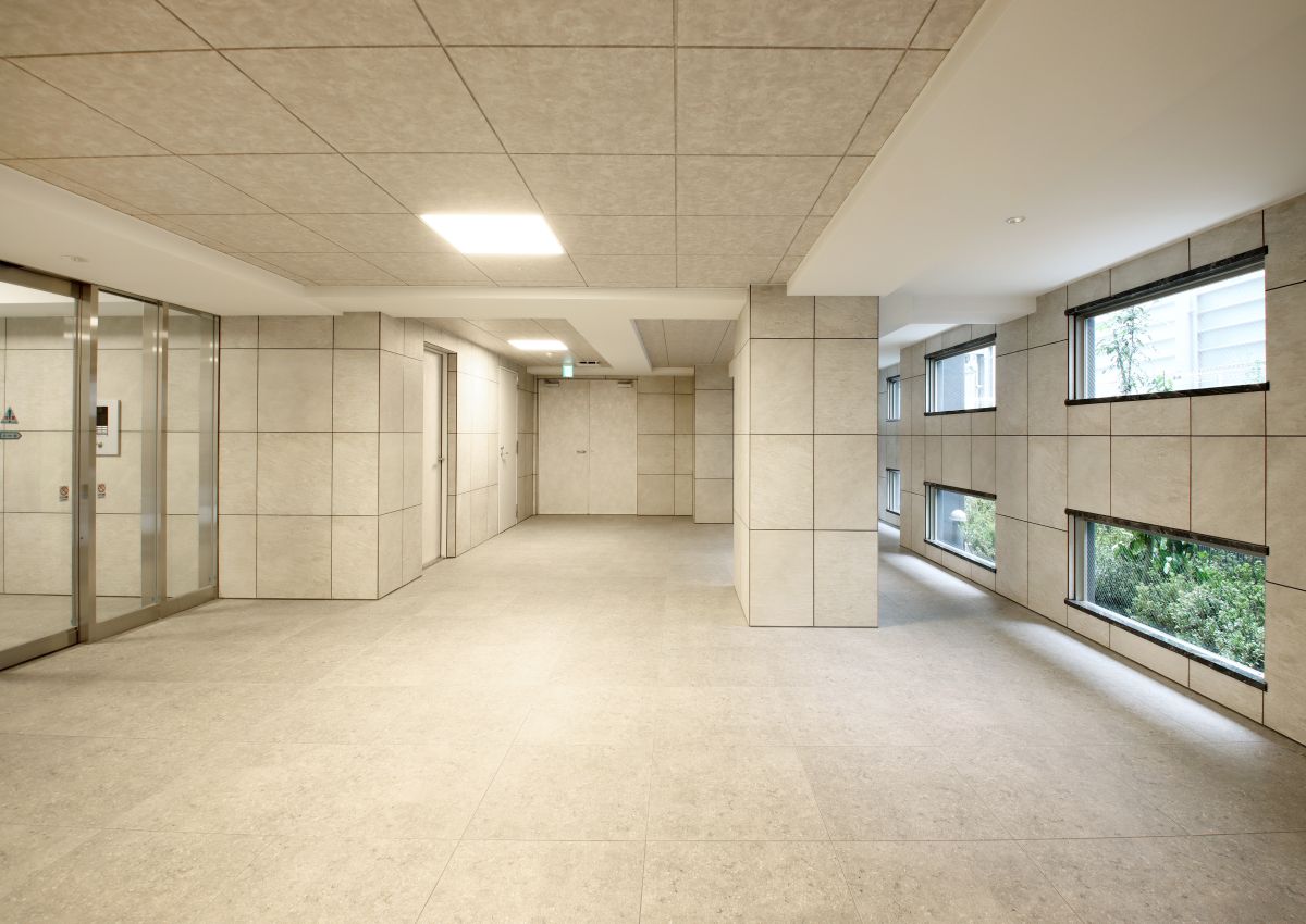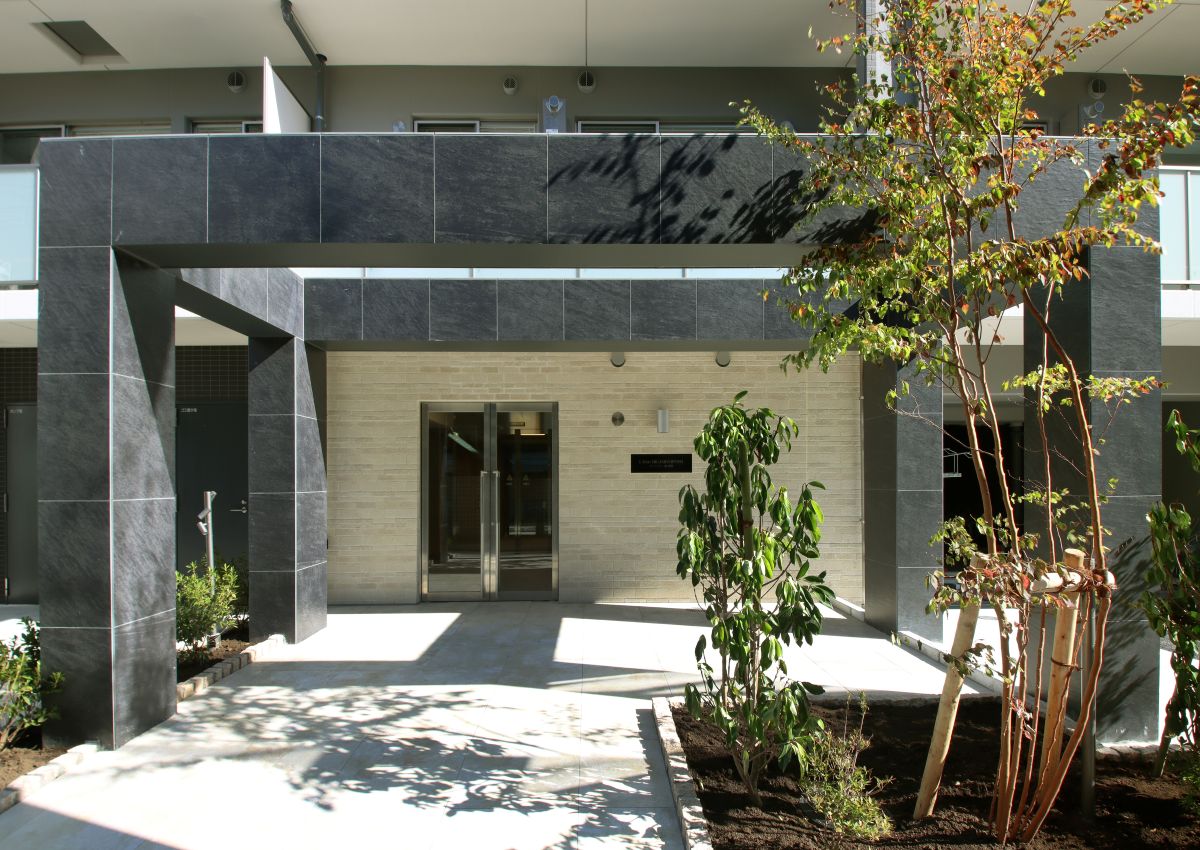 外観には、石調の質感を活かしたタイル素材を採用。重厚感とラグジュアリーさを兼ね備えたゲート空間を演出し、植栽や照明と調和した外構が、優雅なアプローチを描きます。エントランスホールは、シンプルでありながら格調高く、大判のグレージュタイルを基調とした落ち着いた色合いが、いつまでも色あせない上品な迎賓空間を創り出します。